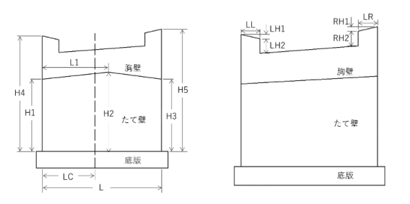 - また、基本情報の「胸壁断面」より、「増厚型」を選択しているときとそれ以外を選択している時で表示される図面が異なります。