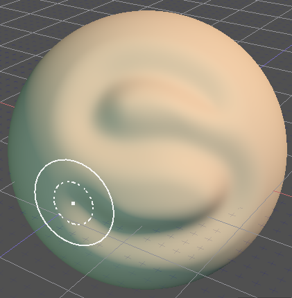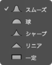 - ブラシの中心からの強度の減衰の仕方を選択します。「スムーズ」、「球」、「シャープ」、「リニア」、「一定」から選択します。