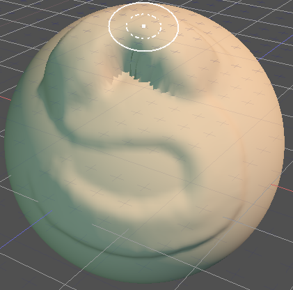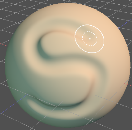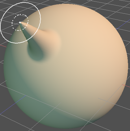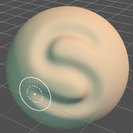 - ブラシカーソルよりも上にある点を掘り下げる、または下にある点を盛り上げます。