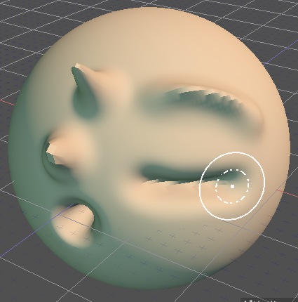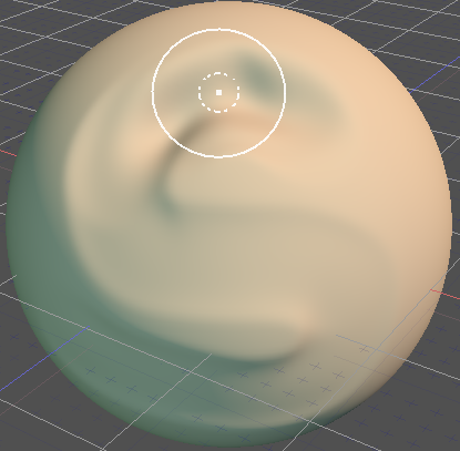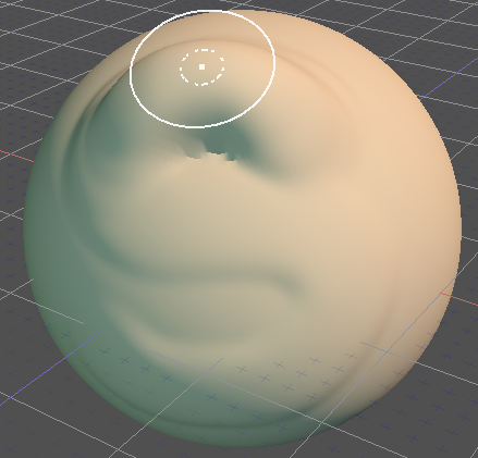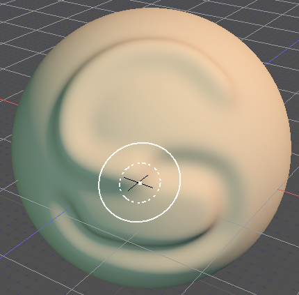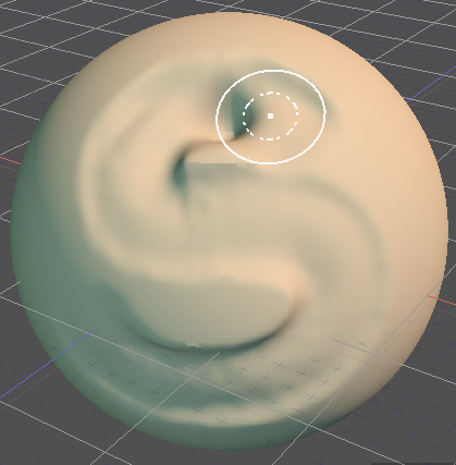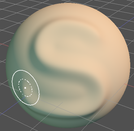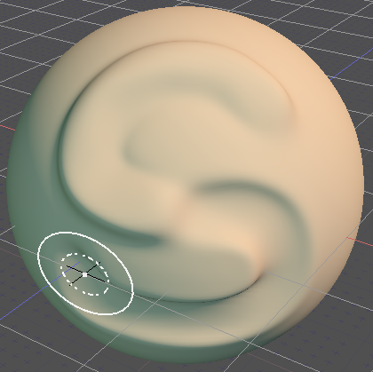 - オンのとき、ブラシの効果を視点に対して表側を向いている面のみに適用します。裏側の法線の影響を受けたり裏側の頂点が移動されることを防ぎます。