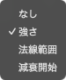 - ブラシに影響を与える法線の範囲をブラシ半径との比率で設定します。