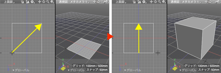 これにより、同一平面を2回ドラッグしてのプリミティブ形状の生成が可能となりました。