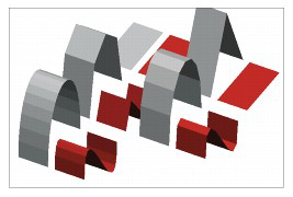 曲面分割記号は、重複して使用することができます。例えば、「面の分割」ポップアップメニューの指定が「粗い」になっているとき、“<<”記号が付けられた形状は「粗い」から2段階細かく分割されます。重複している記号中に“@”記号が含まれる場合は、“@”記号が優先され、分割は行われません。