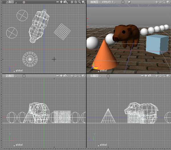 「セルアニメ」に設定を変更した形状のみ、「セルアニメ」調にレンダリングされました。
