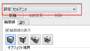 ここでは基本設定を「セルアニメ」にした状態から詳細設定をカスタマイズしていきます。