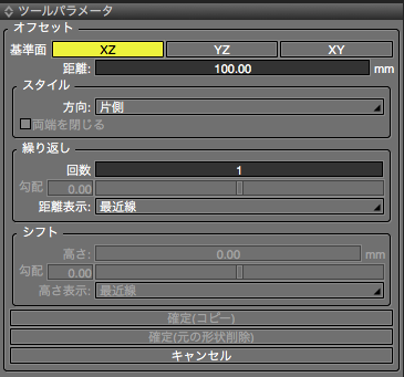 - XZ/YZ/XY平面からオフセットを作成する基準となる面を指定します。