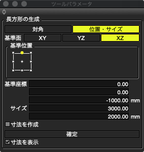 基準面、基準位置、位置座標値とサイズから長方形を作成します。