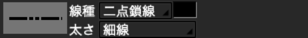 - 線の種類を選択します。「無し」、「実線」、「点線」、「破線」、「一点鎖線」、「二点鎖線」から選択します。