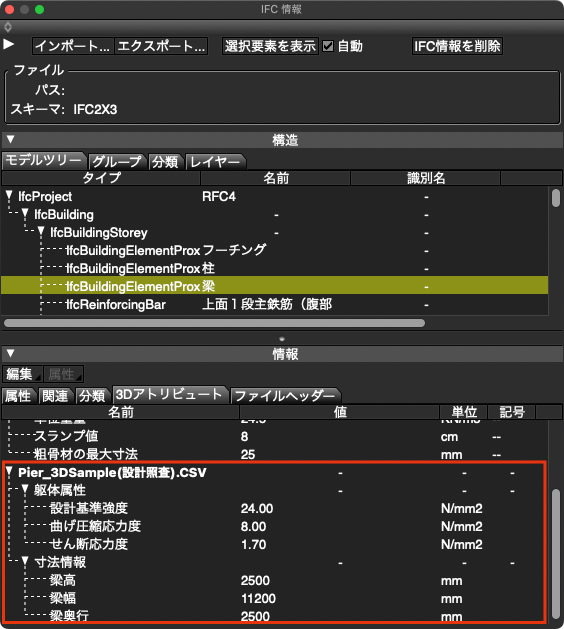 3D配筋CADの出力するIFCファイルに付属する設計照査情報の読み込みに対応しました。