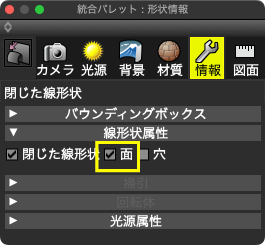 インターフェイス「形状情報」ウインドウ(線形状または円を選択時) > 「面」チェックボックス