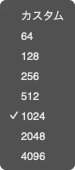 - 生成するテクスチャイメージの縦幅を選択します。「カスタム」、「64」、「128」、「256」、「512」、「1024」、「2048」、「4096」から選択します。