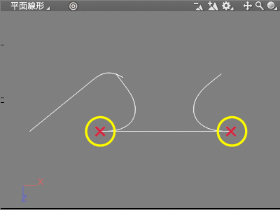 - 「 x = [平面線形曲線の長さ] 」が終端の「道路線形」の高さとなり、この位置は「平面線形」に応じて変化します。