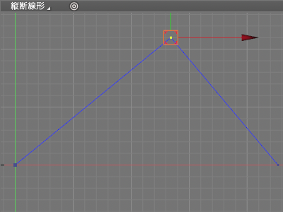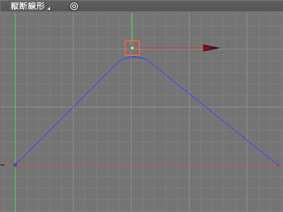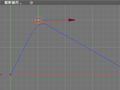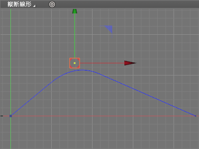「縦断線形」は「始端からの平面線形曲線の曲線長位置に対する高さ」を定義する曲線です。3D図上のコントロールポイントとは別に、2点以上の「縦断線形ポイント」で定義されます。「X軸」が曲線長を表し、「Y軸」は高さを表します。