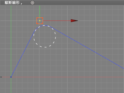 「道路線形」作成時と同様にコントロールポイントの編集を行えます。