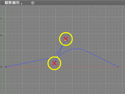 - 「形状編集」モードでコントロールポイントを選択し、削除をすることで「縦断線形ポイント」を削除できます。