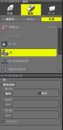 IKのツールパラメータが表示されます。