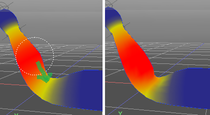 影響範囲は、ツールパラメータの「影響範囲」テキストボックスに直接数値を入力するか、図形ウインドウ上で、マウスの右ボタンを押したままドラッグすることによって変更することができます。
