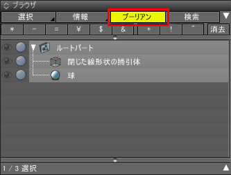 ブーリアン記号の追加や削除は、形状の名前を変更して行いますが、ブラウザの「ブーリアン記号設定」ボタンを利用すると簡単に行えます。