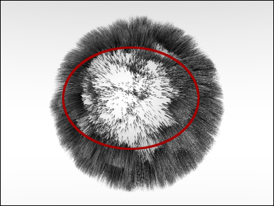 ペンで塗りつぶした部分のみ毛の長さが変更されました。「長さ」テキストボックスを「0.5」に設定したため、塗りつぶした部分が通常の長さより短くなっています。