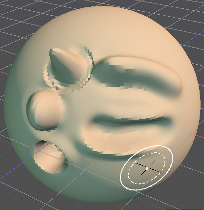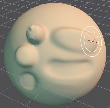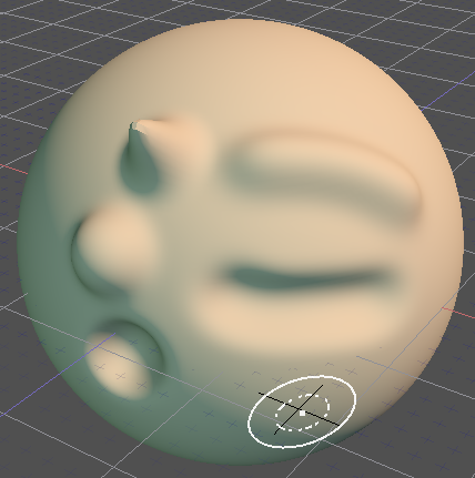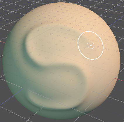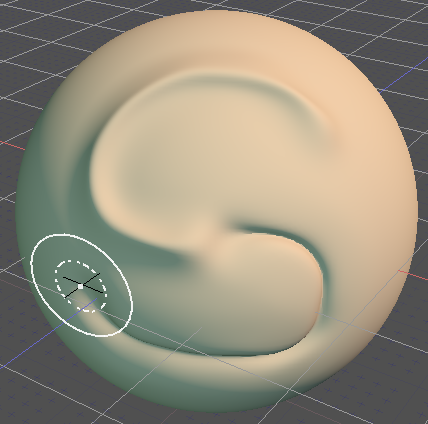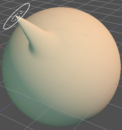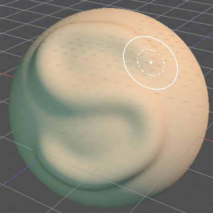 - オンのとき、ブラシの効果を視点に対して表側を向いている面のみに適用します。裏側の法線の影響を受けたり裏側の頂点が移動されることを防ぎます。