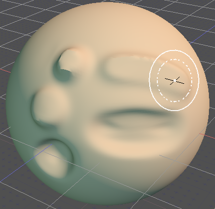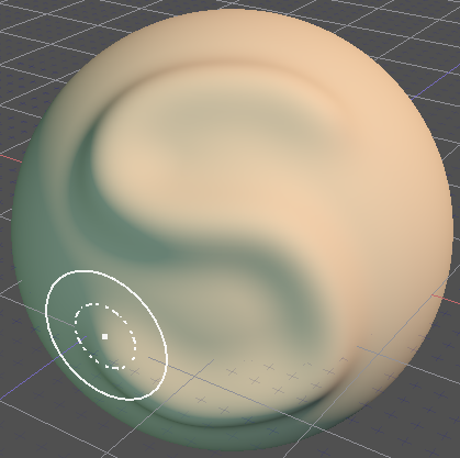 - ブラシカーソルよりも上にある点を掘り下げる、または下にある点を盛り上げます。
