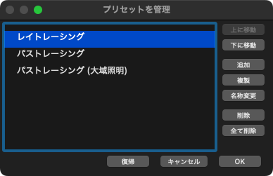 - 登録されている「プリセット」または「シーンスタイル」を削除します。