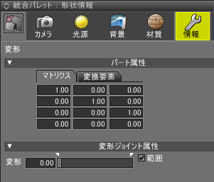 - ジョイント値(「変形」)スライダ、テキストボックス