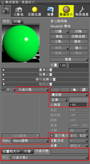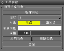 - 「顶点颜色」颜色框,「α值」滑块,文本框的内容不会更改。