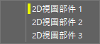 - 顯示場景內的所有2D視圖部件。選擇顯示的2D視圖部件。