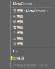 介面「切換圖面」彈出選單 > 「2D視圖」